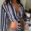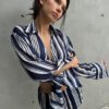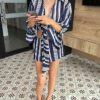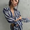 Inspired by the most acclaimed prints of the 90s, stripes will never go out of style. Our set features a crop top shirt with an adjustable silver trim in the middle to regulate it, plus the V-neck and neckline make this the perfect piece. The second piece of this set is a mini short that matches it, made of the same fabric and with an elastic on the edge that makes it fit your body.